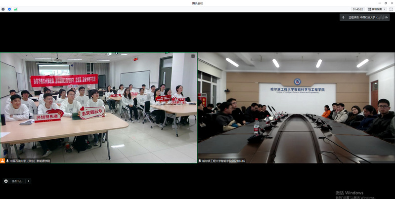 活动伊始,陶志雄介绍了本次活动举办的目的,并对哈尔滨工程大学的老师与员工表示欢迎。随后,石大电气(卓越)2007班周星辰、哈工大自动化类16班胡楚笛分别从学校、专业以及支部建设情况三个方面进行详细介绍,陶志雄结合两校古镇口校区建设作出补充,并提出希望日后两支部能够保持密切联系,结合专业特长开展更多活动。最后,结合两个支部的介绍,针对党的二十大精神的学习、科技赛事、学习方法、活动开展等方面,双方进行了交流研讨,相互学习、优势互补。活动结束后,电气(卓越)2007团支部魏雅琪表示:“我们青年更应该明确对自身的要求,不忘初心砥砺前行,怀抱梦想又脚踏实地,提升自身素养,认真学习知识,让学习成为推动自身发展的内在动力。”