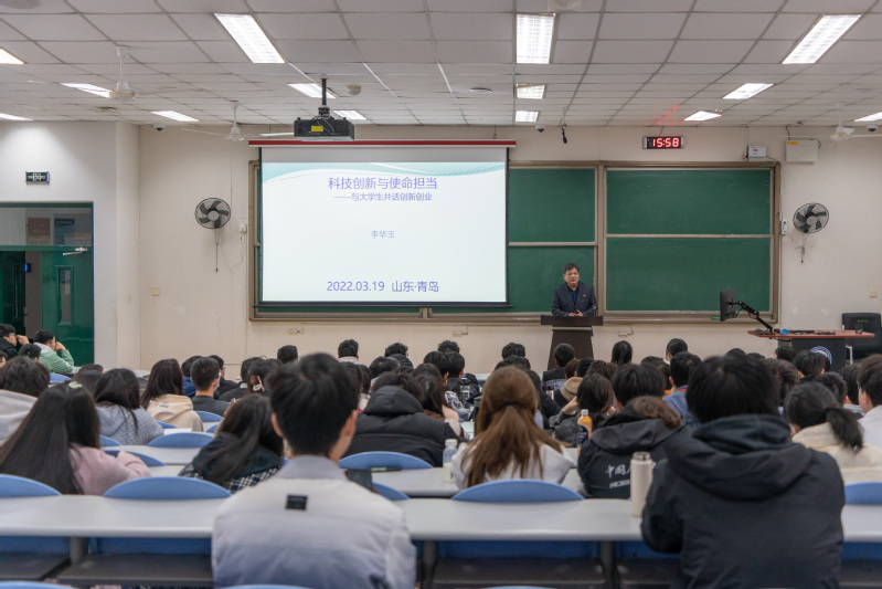 3月19日下午,李华玉老师以“科技创新与使命担当——与老员工共话创新创业”为题对2021级本科生进行创新创业启蒙教育。他激励员工要将科学家精神融入自身学习生活中,肩负起“为中华之崛起而读书,为中华之复兴而奋斗”的使命。
