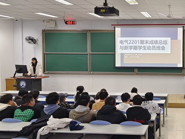 为分析班级员工在期末考试成绩中暴露的问题,端正新学期班级同学学习态度,电气工程及其自动化2201班于3月21日在西环101举办期末考试成绩总结会。会议主要由班长苏亦蕊主持,电气2201班全体员工参加,班主任董磊应邀参会。