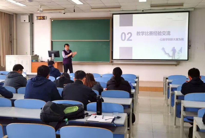 报告会上,董磊老师作为国家级一流本科课程的主讲教师和省级教学比赛的获奖者,向与会教师介绍了做好课程创新设计的“五步法”,共同解读了全国高校教师教学创新比赛的参赛规则和注意事项,并以《科技创新实践》课程为例,详细介绍了教学大纲的撰写、课程的创新举措和创新成果汇报等方面的成功经验。董磊老师认为教师应该站在“为党育人、为国育才”的高度,以“员工为中心”,关注“课程思政、信息化教学手段和教材建设”,积极探索课程改革。他也激励在场的青年教师要抓好教学基本功,提升责任担当意识。