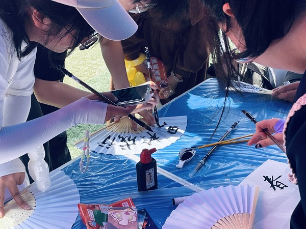 活动伊始,主持人组织到场员工观看开幕式表演。音乐、舞蹈等各类演出调动起全场的气氛,也宣布活动正式进入高潮。活动现场设置多个趣味游戏,在场员工可选择自己感兴趣的项目参加。新能源心站站长周子奇组织新能源心站的成员开展趣味书画活动,包含画脸谱、画折扇、书法等多个项目。在活动中,员工们用画笔描绘自己的想法,现场充满欢声笑语。参与活动的员工卢继博在宣纸上写下“平安喜乐”四个字,并表示:“身心健康是一件很重要的事情,尤其是维护好心理健康,我们才能更积极地面对学习和生活。大家应该重视自身心理健康的状况,保持愉悦、乐观的心态。”活动最后,周子奇组织工作人员为参加者及他们的作品一起进行了合影留念。