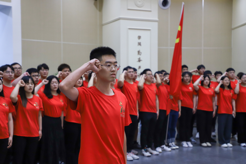 毕业生党员面向党旗宣誓 苏亦蕊摄
