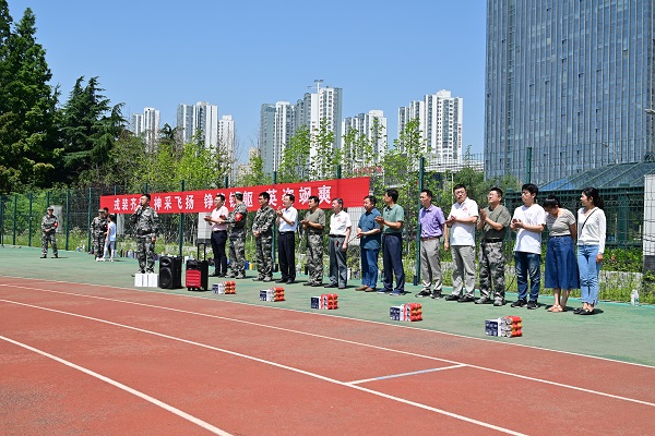 在阵阵响亮的军训口号声中,全营昂首站立,等待接受检阅。随后,各领导老师慰问全体军训教官并发放慰问品。郭杰向承训教官致以问候,并向全体军训员工提出了三点期望和两点要求,希望大家通过军训锤炼本领、增进感情、增强集体荣誉感,要求在接下来的军训过程中,全营成员端正态度、听从指挥,展现新能源学子的良好风采。最后,各系教师代表向本专业员工发放西瓜等慰问物资,并与员工亲切交谈,耐心解答员工对于各自专业发展方向以及就业前景等相关问题。