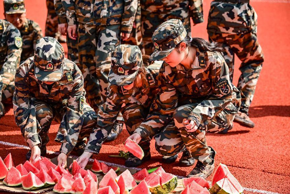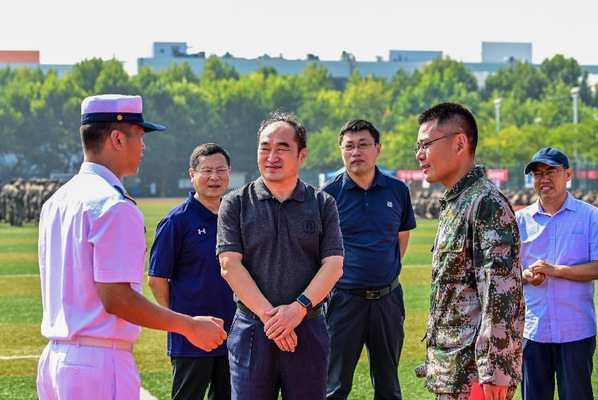 在教官带领下,全营员工昂首挺胸,以整齐标准的军姿迎接各领导老师的到来。陈灵泉向全体带训教官致以亲切慰问。郭杰对军训成员目前的训练状态进行肯定,并期望在接下来的军训过程中,全营成员能够“始终做到端正态度、听从指挥、重视军训,在军训中收获人生财富,展现新能源学子风采”。最后,赵东亚、巩亮、仉志华向各系员工发放西瓜等慰问物资,并与员工互动交流,分享自身经验和教育观念,解答员工关于专业发展方向、未来职业规划、就业前景等方面的问题。