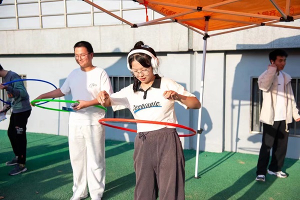 下午三点,主持人开场并介绍本届青年健身节概况以及“一院一品”聘任仪式启动,教师、运动员代表依次上前进行发言,表现出对本届青年健身节的期待。发言结束后,第十九届青年健身节正式开幕。员工们穿梭于各个摊位间寻找自己感兴趣的游戏,学院开展与运动有关的趣味游戏活动,如:呼啦圈问答、反身扔沙包活动。在呼啦圈问答活动中,参与者被分成小组,每组需轮流回答与健康生活和新能源相关的问题,这个环节既增进了对健康知识的了解,也促进了团队合作。另一项备受欢迎的活动是反身扔沙包比赛。参与者需要站在一定距离处,反手扔出沙包,搭档在指定区域内接住沙包。这项活动考验了参与者的目标感和协调能力,也增加了竞争和互动的乐趣。无论胜负,大家都在运动中享受到体育健身的快乐。开幕式的活动内容丰富多彩,旨在促进员工们的体育锻炼和团队精神,同时也提供了互动的机会,加强了学院师生之间的联系。学院员工会体育部部长张瑞行表示:“希望这次健身节可以成为员工们健康生活的开始,激发更多人关注体育锻炼的重要性。”