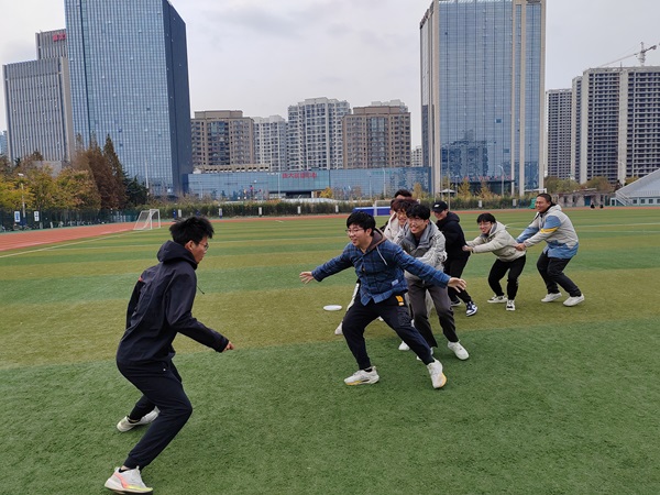 活动伊始,李泉简要说明活动举办的目的,详细介绍活动流程和比赛规则,并强调安全的重要性。随后,支部成员依次进行“掷飞盘”“老鹰捉小鸡”“五人六足”“踩气球”等趣味运动,在充分调动积极性的基础上开展体育锻炼。在“五人六足”的比赛中,支部成员相互配合,不断尝试,提高了身体协调能力和团队配合意识。在“掷飞盘”比赛中,支部成员充分发挥主观能动性,商讨与制定策略,由组长统一协调调度,并根据对手反应调整战术,提高了反应能力与组织能力。最后,支部成员清理现场,并根据个人兴趣分组进行自由活动。活动结束后,李泉表示:“我们在平时学习和生活中可能对体育锻炼有所忽视,正值青年健身节来临之际,学校体育锻炼氛围浓厚,我认为这是一个良好的机会,让我们更加重视体育锻炼和身体健康。”