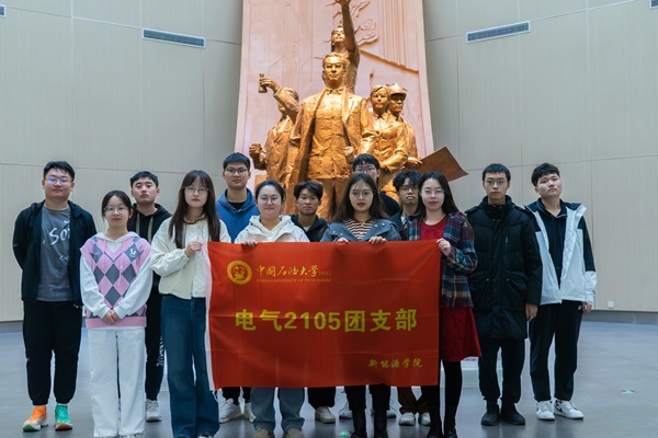 活动伊始,由团支书么旻蕊带领前往校史馆。校史宣讲团讲解员为员工依次讲解了序章、编年体展区、专题展区、愿景厅、艺术馆等展厅,通过图文、实物、多媒体、立体造型以及场景还原等多种形式,全方面展示了石大人的精神面貌,提高了员工的体验感。从讲解员的讲解中,员工回顾了学校不同历史时期的突出成就和卓越贡献,深刻体悟“家国同心、艰苦奋斗、惟真惟实、追求卓越”的“石大精神”。电气2105团支部书记么旻蕊表示:再度参观校史馆,依旧收获满满。70年的风雨兼程,铸就了石大光辉的历史,更深刻地理解了石大人如何践行“走向人民需要的地方”——国之所需,民之所需,即吾辈之所为。团支部以此次参观学习为契机,更加深入地学习党史及新中国史,进一步坚定理想信念,厚植爱国爱校情怀,在学习工作中加倍努力,为祖国建设作出更大的贡献。最后,在序厅雕塑前,讲解员对此次参观进行简要总结,并表达了对员工的鼓励和祝愿,团支部成员进行合影。