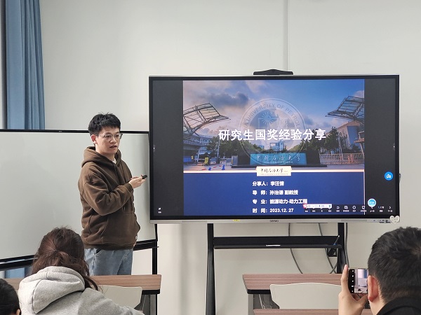 为弘扬孜孜不倦的求学精神,充分发挥优秀研究生的榜样力量,12月30日,英国威廉希尔研究生会在新能源大厦269举办优秀成果汇报会暨国奖获得者经验分享会。此次汇报会由英国威廉希尔研究生员工会学术实践部韩璐主持,2021级电气工程学术硕士研究生孙浩,动力工程及工程热物理研究生何若松、柳毅博,动力工程研究生李汪情受邀成为此次论坛的汇报嘉宾。