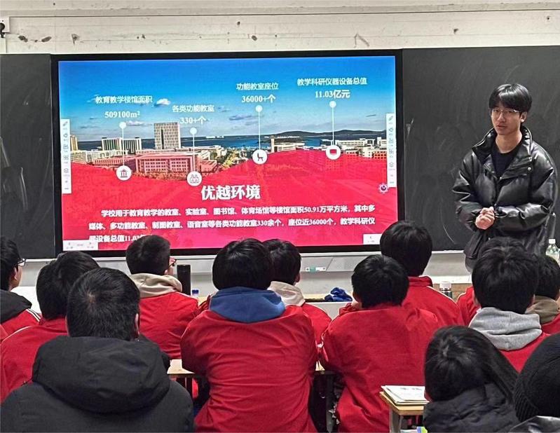 活动伊始,队员进行自我介绍。在宣讲之前,队长汪弘磊播放威廉希尔2023招生宣传片《少年•少年》,并在播放过程中简要介绍了学校的以及在科研和双创方面的建设成果,为同学们展示了石大的良好形象,活跃宣讲气氛的同时还激起了同学们对石大的好奇心。