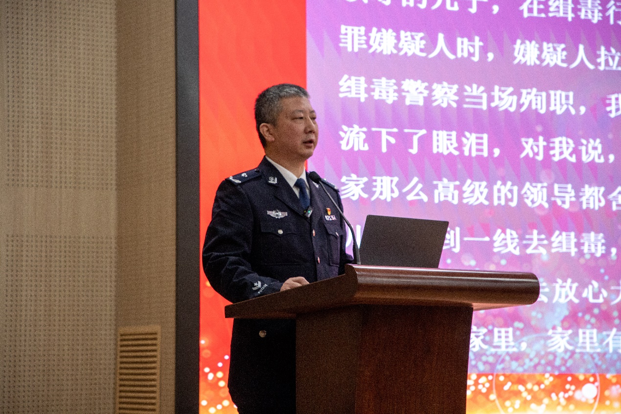 青岛西海岸新区禁毒办主任、开发区分局党委委员、副局长丁伟,新区禁毒办副主任、开发区分局禁毒大队大队长曹友龙,开发区分局二级高级警长王弘山,公司党委书记陈灵泉,公司党委员工工作部副部长张程,学校保卫处副处长苏兴出席;公司党委副书记郭杰主持此次活动。