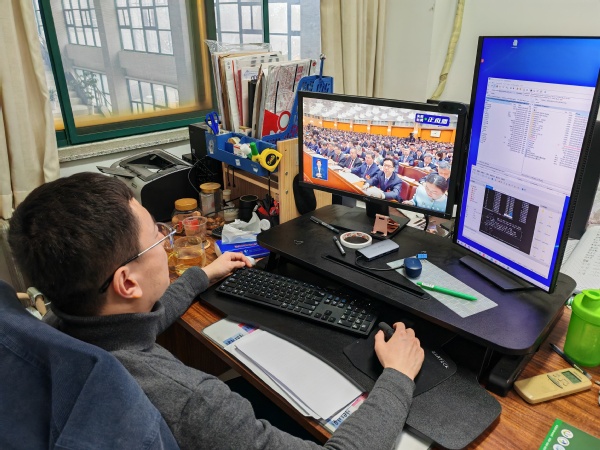 3月5日,十四届全国人大二次会议在北京召开,学院第一时间组织师生党员、团学干部以及青年员工于唐岛湾、古镇口两校区观看十四届全国人大二次会议开幕式,形成“领导干部带头学-员工组织集中学-团员青年全员学”的学习热潮。