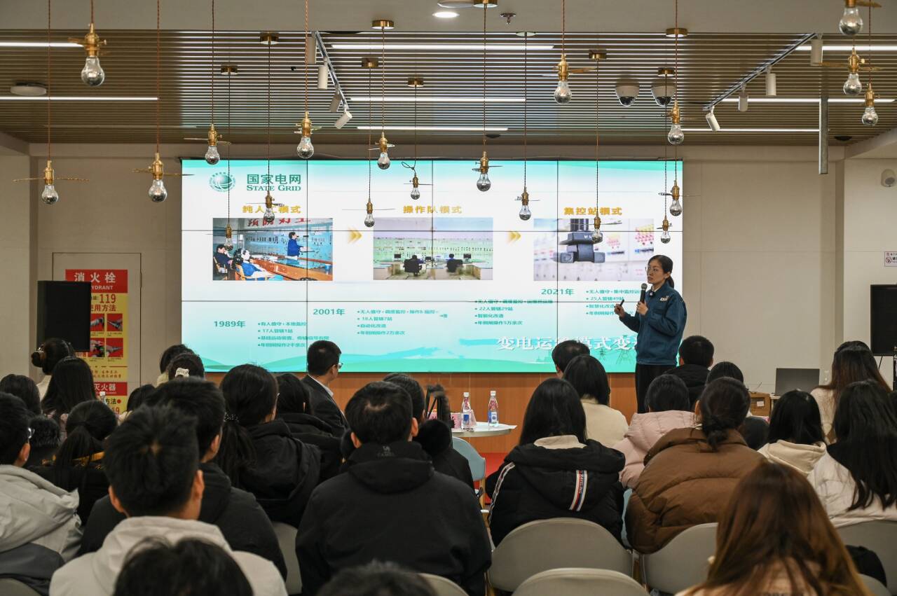 孙晓兰从“坚决扛牢保供责任”“勤于思考,敢于创新”“担当有为,做就最好”三个方面,面向电气专业员工进行讲述。她以国网青岛供电公司在上合组织青岛峰会保电任务为例,通过分享期间提出的“六个零”工作目标、“五个最”工作要求等,展现出电气行业工作者以最严密的组织措施、最科学的保电方案、最高的可靠性,保证“亿万分之一也不失”的匠心坚守。提及变电运维工作,孙晓兰表示:“工作不难,难的是干一辈子运维工作不出差错,任何时候不要敷衍了事不马虎大意,不讲标准不打折扣,这样才能保证安全生产也是做任何事情的基础”,并鼓励在场员工“以十年磨一剑的韧劲,以‘一辈子办成一件事’的执着,攻关高精尖技术,成就有价值的人生。”