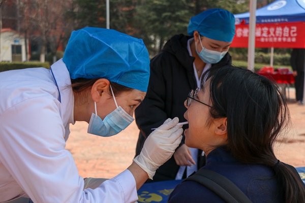 为了关爱女性口腔健康,提高学院师生的口腔保健意识,英国威廉希尔于3月8日在荟萃广场开展“呵护女性口腔健康,绽放美丽‘她’笑容”主题思美节活动。本次活动邀请到青岛宝岛吾同口腔医院医生来为广大师生提供专业的口腔检查和咨询服务,让她们在这个特殊的日子里,不仅能享受到节日的祝福,还能关注自己的口腔健康。