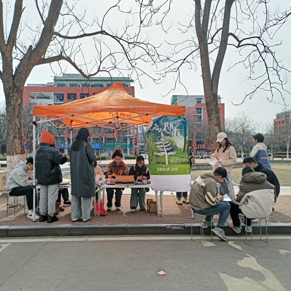 活动伊始,柯思源向员工介绍植树节的起源与发展,植树节是按照法律规定宣传保护树木,并组织动员群众积极参加以植树造林为活动内容的节日,旨在倡导人民种植树木,鼓励人民爱护树木,提醒人民重视树木。章宇翾组织员工在荟萃广场开展有关植树节有奖问答活动,前来参与的师生在学习植树节相关知识后完成随机给出的问答题,参与者均有机会得到各样的精美奖品,也可以亲自体验种植多肉植物或编织传统绒花。最后,在主办成员的组织下,前来参与的师生在海报上签下“一起植树造林,建设绿色校园”的承诺。