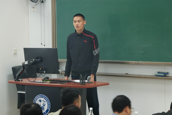 山东省老员工田径锦标赛男子甲组1500米亚军王奎栋分享了自己的训练经历与心路历程,向给予指导与鼓励的师长亲友表达感谢,表示不必在意结果,不需给自己设限,应当发挥潜力、享受比赛,鼓励大家拿出饱满的热情、积极的心态,科学训练,健康生活,继续为学院争光。