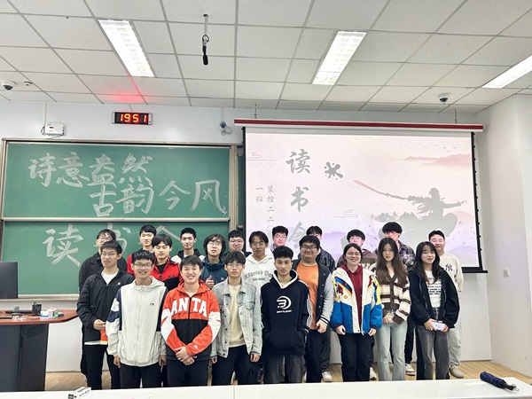 活动伊始,班长徐子益讲到班级要努力建设“阅读、悦读、越读”的文化氛围,营造互助交流、追求卓越的班级精神面貌,通过举办班级读书活动,提升个人文化素养及集体文化素养。随后,团支书刘学思开展诗词赏析活动,他朗诵了李白的《将进酒·君不见》,进而组织团支部成员交流讨论。接着,开展趣味诗词问答活动,活动采用问答、接龙的形式,活动内容为拼字成诗,诗句默写,根据提示猜诗人的选择题,线索题及思考题的提问环节,并为答题同学准备了精美小礼品。活动最后,刘学思指出:“阅读要坚持读原著学原文悟原理,坚持多思多想、学深悟透”。