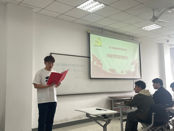 为了评估新一批发展对象的发展情况,完成下一批预备党员的接收工作,5月24日,2021级能动本科生党支部于综合楼A521教室召开预备党员接收大会,会议由靳雨横主持,2021级能动本科生党支部全体预备党员、发展对象参会。