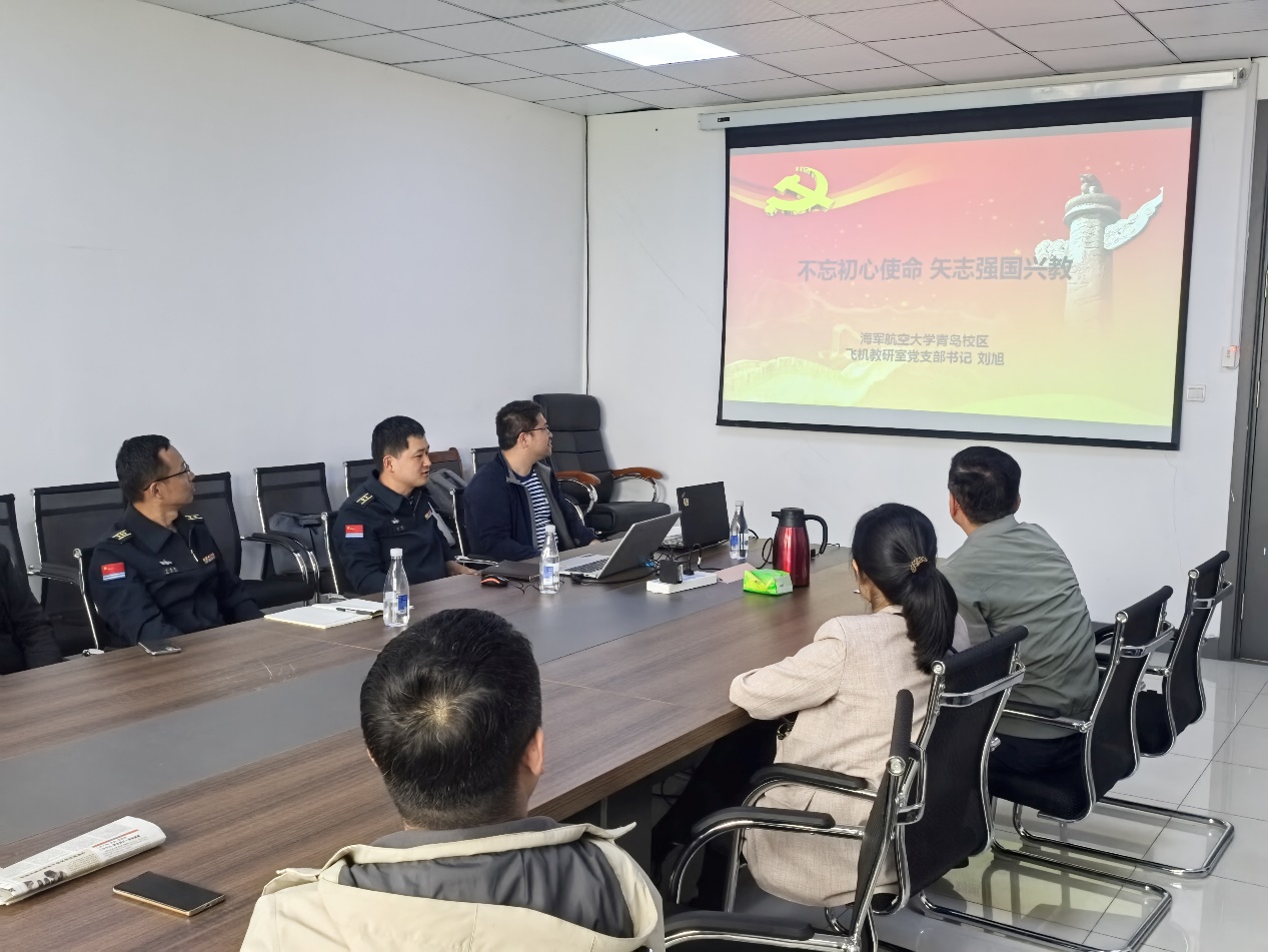 刘旭书记以“不忘初心使命 矢志强国兴教”为题介绍了海军航空大学飞机教研室党支部党建工作开展情况和特色经验