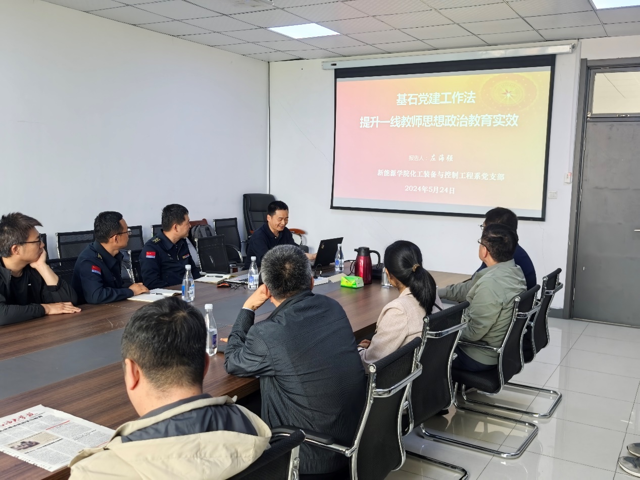 支部书记左海强以“基石党建工作法:提升一线教师思想政治教育实效”为题介绍支部党建开展情况