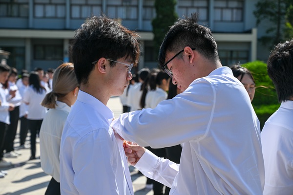 为预备党员佩戴党徽 刘妍摄