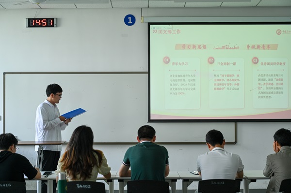 汇报开始,主持人田鸽向大家介绍本次汇报的基本要求,为本次汇报拉开序幕。汇报过程中,各团支部按照抽签顺序依次进行班团建设展示,积极交流分享学风建设、团日活动开展的经验。在汇报中,能动2301班和环设2301班均指出建立班级积分制度对督促员工学习具有警钟作用;环设2302班提出“先进带动后进”的方法,帮助员工共同进步。各班学风制度健全且各具特色,在督促员工学习方面发挥巨大作用。装控2302班、电气2301班等多个团支部分享联合组织开展团日活动的经验,以鲜活实例向其他团支部展示团日建设。各团支部汇报结束后,2023级团总支向他们展示近期活动开展情况,为各团支部工作提供典范。团日活动涉及种类繁多,文体发展、思想成长、社会实践等活动开展的有声有色。汇报最后,秦政进行总结点评,秦政表示:“此次班团建设汇报展示,目的在于通过此次汇报督促各班团工作,帮助各班团间相互学习,积极交流学习,进一步促进各班团建设活动的开展。”