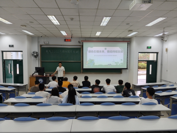 为深入学习生态文明思想,响应世界环境日“人与自然和谐共生”的主题,电气2202团支部于6月21日下午在讲堂群西环104教室举办了“绿色引领未来,青春助力环保”主题团日活动。本次活动由团支书相彦明主持,电气2202班全体员工参加。