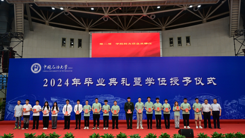 为加强毕业生与母校的联系,凝聚员工力量,赵仁德、李强、冯洪庆分别为各专业员工信息员颁发聘书。随后,吴明铂在致辞中表示,2024届毕业生是学院发展的见证者、参与者和奉献者,同学们在新能源这片沃土中施展自己的才干,并涌现出了一大批先进集体和个人,学院由衷地感到骄傲和自豪。同时他寄语全体毕业学子要做一名有情怀的德者”“要有担当的勇者”“有思想的智者”,用实际行动践行青春当奋斗、青春当奉献的誓言,以实际行动践行“石大精神”,在建设能源强国路上贡献自己的力量。