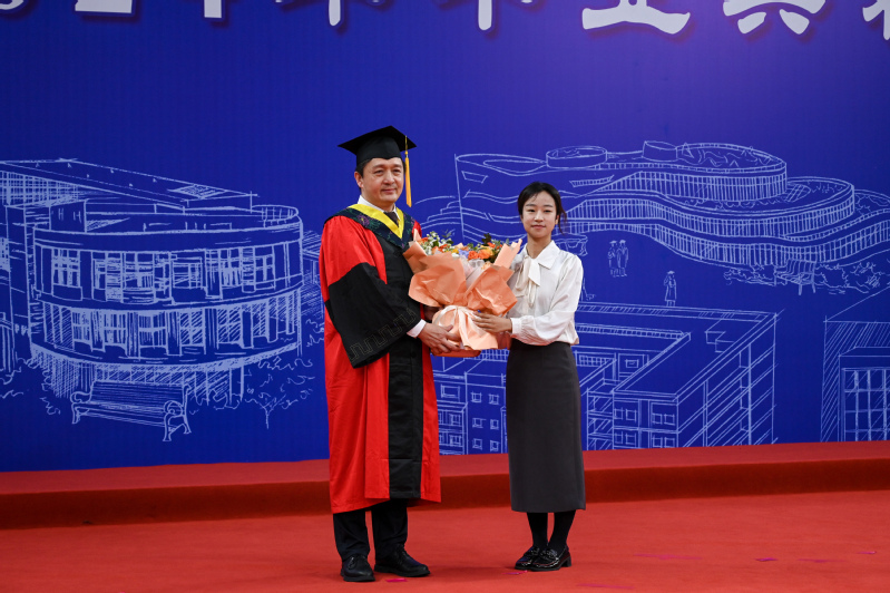为表达对学院对美好的祝福和深深的不舍,2024届毕业本科怀欣颖代表全体毕业生向学院送上鲜花,随后怀欣颖刘增光分别代表毕业本科生和毕业研究生上台发言。怀新颖代表毕业本科生表达了对母校、老师、亲人的感谢,并以“前行”为主题分享了自己在学院四年的成长故事,她谈到,“我们一定传承石大精神,以石大人的奉献和担当,在人生新征程上再建功业刘增光表示,作为首批入驻古镇口校区的研究生,他们见证了古镇口校区日新月异的发展。作为一名新能源学子,一定会牢记能源报国的责任和使命,为国家的能源事业贡献力量,做有理想、有担当的新时代青年。