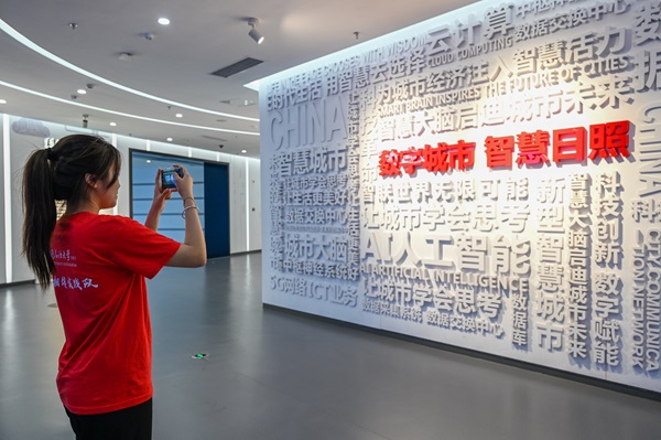 实践队员认真参观城市大脑基地 王奕栋摄