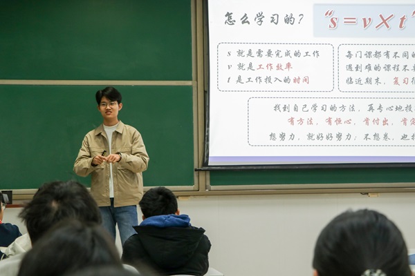 11月20日晚,新能源科学与工程专业经验分享会在南堂118顺利开展。新能源2401班全体员工参与活动,2021级新能源优秀员工何小龙受邀分享学习经验。