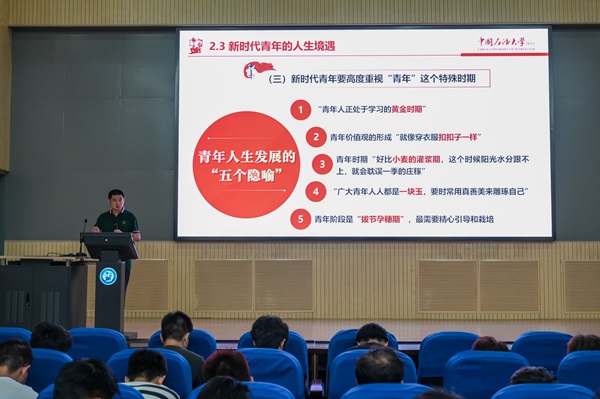 讲座伊始,田鸽简明扼要地介绍本次讲座目的并表达对受邀老师穆海涛的欢迎。讲座开始后,穆海涛老师指出:“新时代青年成长和发挥作用的时期,正好与中华民族伟大复兴相吻合,这既是时代提供的历史机遇,也包含着党和人民的殷切期望,更是一代青年的荣光。新时代青年应勇敢地担当起历史的重任,做担当时代大任的青年。”讲座结束后,穆海涛表达对23级学子的殷殷期望,希望23级学子可以用青春的能动力和创造力肩负起自己的责任。活动最后,秦政主持团课闭幕式,宣布本学期团课完美落幕。