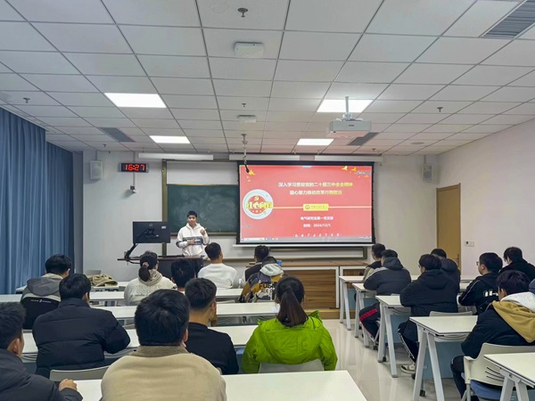 为深入学习贯彻党的二十届三中全会精神,进一步推动支部党员坚定改革信心,凝心聚力助力改革行稳致远,2024年12月5日,电气研究生第一党支部在古镇口综合楼209教室召开了主题为“深入学习贯彻党的二十届三中全会精神,凝心聚力推动改革行稳致远”的组织生活。本次组织生活由支部副书记李泳祺同志主持,全体党员参加。