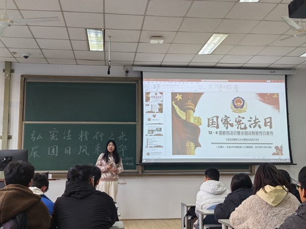 12月18日,为深入学习贯彻习近平法治思想、弘扬宪法精神、维护宪法权威,环设2402团支部、工业2402团支部于南堂120联合开展主题为“弘宪法精神之光,展团日风采之华”的团日活动。