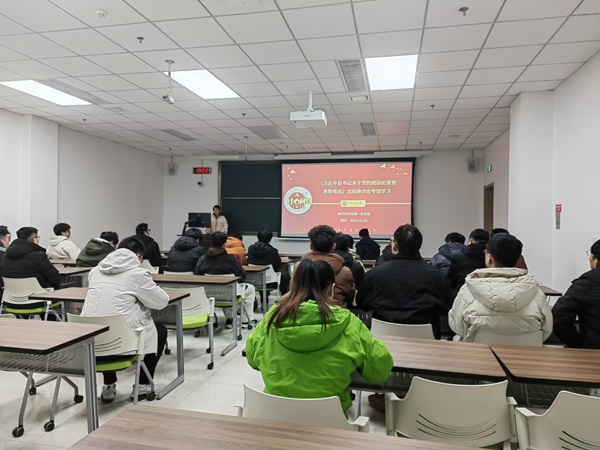 为深入学习习近平总书记关于党的建设的重要思想概论,电气研究生第一党支部于2025年2月26日在综合楼地下一层004教室召开了专题组织生活。会议由支部副书记李泳祺同志主持,全体党员参加会议。