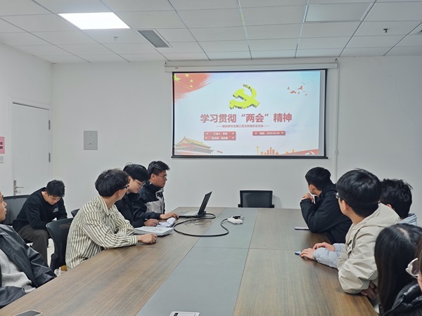 会上,李旭同志围绕“学习贯彻两会精神”主题进行了汇报。会议伊始,李旭同志对2024年进行了回顾。他指出,过去一年是我国发展历程中极不平凡的一年,面对复杂严峻的国内外形势,全国各族人民在党中央坚强领导下,砥砺奋进,经济运行总体平稳、稳中有进,高质量发展扎实推进,中国式现代化迈出坚实步伐。随后,李旭同志详细介绍了2025年经济社会发展的总体要求和政策导向,通过观看相关视频,介绍了我国在科技、医疗、养老和强军等方面的成就和政策。最后,在介绍2025年政府工作任务部分后,李旭同志着重强调,作为研究生应当将“两会”精神与自身的学习和研究紧密结合,立足专业领域,聚焦国家重大战略需求,积极参与科研攻关,推动科技创新和产业升级。并号召全体成员深入学习贯彻“两会”精神,坚定信心、锐意进取,将个人成长与国家发展紧密相连,为实现中华民族伟大复兴贡献青春力量。