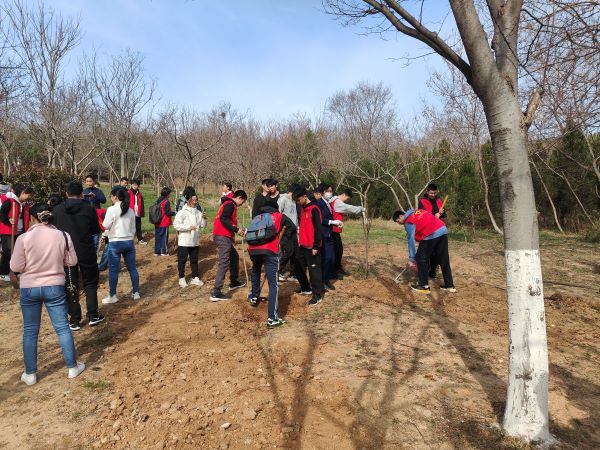 在植树活动现场,党员们与西海岸新区一中的师生们分工协作,密切配合。大家手持工具,挖坑、栽树、培土、浇水,每一个环节都一丝不苟。经过大家的共同努力,共计种植了8棵玉兰和8棵樱花树。这些新栽种的树木在春风中挺立,为小黄山增添了一份生机与活力。此次活动不仅让党员们在实践中体会到了劳动的艰辛与快乐,更增强了大家的责任感和使命感。同时,通过与西海岸新区一中的合作,进一步加强了学校与党支部之间的沟通与交流,为员工们树立了良好的榜样,引导他们积极参与环保行动,培养他们的社会责任感。
