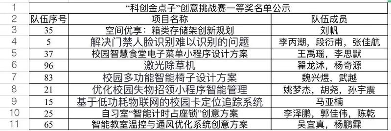 一等奖获奖名单