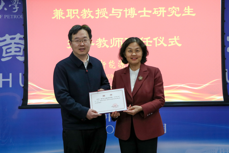 论坛开始之前,学校举行了兼职教授及博士研究生指导教师聘任仪式。聘请杨勇为学校兼职教授、博士研究生指导教师,同时聘请中石化高级专家倪承波为学校兼职教授。学校副董事长戴彩丽为两位专家颁发聘书。