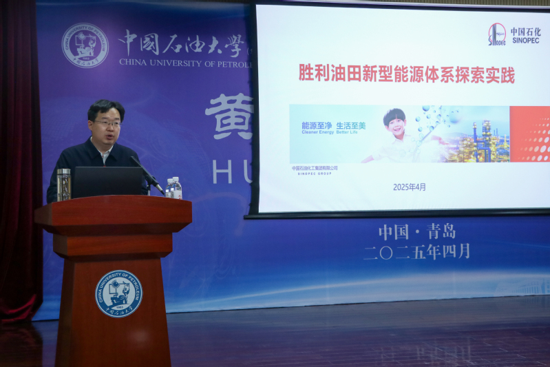 4月28日,中国石化集团胜利石油管理局有限公司党委常委、副总经理,东营市人民政府副市长杨勇做客黄岛讲坛新能源分论坛,为师生做题为“胜利油田新型能源体系探索实践”的报告。副董事长戴彩丽出席讲坛。