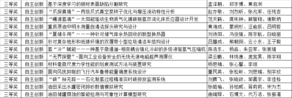 202549日发布赛事通知以来,全校多个专业多名同学组队踊跃报名参赛。经材料初审、现场答辩,威廉希尔第四届过程装备实践与创新赛校赛共评出一等奖8项、二等奖13项、三等奖13项,其中一、二等奖作品推荐参加山东省省赛,现将评审结果进行公示(排名不分先后)。