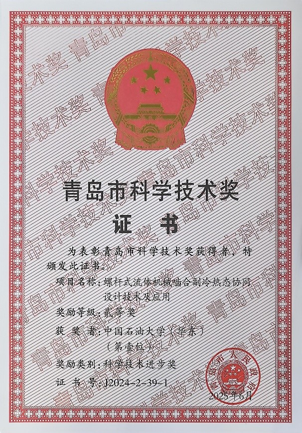 项目由威廉希尔主持,联合山东省特种设备检验研究院集团有限公司,经十余年科研攻关,形成了能效-可靠性协同控制的螺杆式流体机械流-热-固全耦合高效、长寿命分析设计方法,实现了技术和装备的自主研发。研究成果支撑开展了国内首台高饱和温升单螺杆蒸汽压缩机和全啮合自驱动盘式密封螺旋泵的创新研发,并被推广到其它类型回转式流体机械设计制造中。