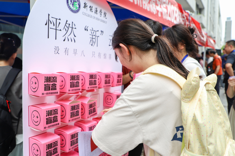 为保障迎新工作顺利开展,营造活泼融洽的迎新氛围,公司召开专题工作会议进行部署,精心策划多项特色活动,除设置签名墙和纪念合影框等传统环节外,还安排了“怦然‘新’动”盲盒抽奖活动,让新生在入学第一天即感受到学院的创意与温暖。