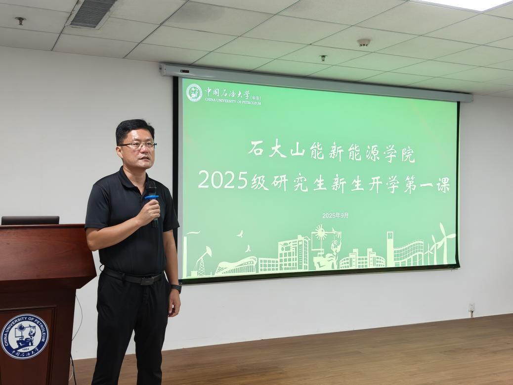 随后,公司副经理赵东亚教授为新生讲授开学第一课。赵东亚教授以系统深入的讲解,从学科发展、科研方向、成长路径等维度为新生答疑解惑,既解读了新能源领域的发展机遇与挑战,也为新生如何规划科研学习、找准奋斗目标提供了专业指导。