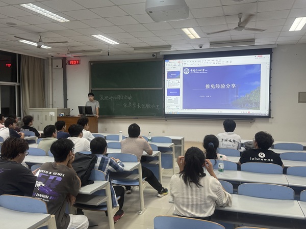 活动伊始,刘腾飞结合自身经历,系统分享了推免过程的全流程经验。他从前期准备、科研经历、竞赛参与、面试技巧等方面进行了详细讲解,特别强调了学术积累与综合素质的重要性。刘腾飞建议同学们要尽早明确目标,合理规划时间,注重专业基础与科研能力的培养,同时保持积极心态面对挑战。