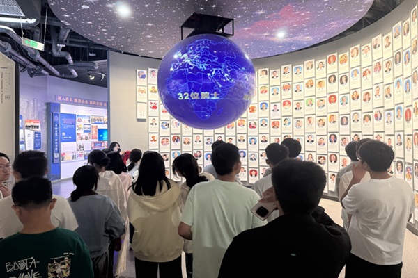 在校史馆,新生们跟随着讲解员,走进校史展厅,新生们认真观摩展柜中陈列的员工证、旧教材和各种实验器材等,墙上的迁校路线图展现出学校从北京起步,辗转东营,最终扎根青岛的完整历程;优秀员工展区陈列着多位杰出员工的照片与简介。他们秉持着“艰苦奋斗、惟真惟实”的石大精神,在不同领域取得卓越成就,激励着在场的每一位新生。走进能源学科展区,新生们了解到学校从以石油为主的传统能源领域,逐步拓展到风电、太阳能等新能源方向,展现了在能源领域的持续探索与创新进步。