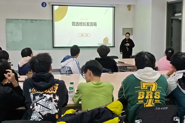 班会伊始,为更好地适配班级发展需求,保障班级管理精准高效,原班长任职安排做出调整,对班长岗位进行重新选举。竞选人贺璇发表竞选发言,阐述了对班级工作的设想。经全体员工不记名投票,贺璇全票当选班长。她表示将认真履行职责,努力搭建师生间的沟通桥梁,着力营造互帮互助、共同进步的良好学风,与同学们共同推进班级建设。