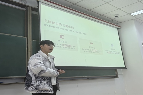 班会伊始,班长孙浩鑫以生动的引导与图文资料,详尽介绍了老员工活中树立主体意识的重要性。孙浩鑫提出主体意识的三重坐标,分别在学习,生活,规划的方向为大家给出了有力指引。其次,孙浩鑫又结合校园安全管理规定,讲解宿舍火灾预防要点,重点说明插线板使用规范、易燃物品存放要求等内容,带领班级成员开展了关于宿舍火灾安全自检的互动讨论,有效地唤醒了大家“居安思危”的防范意识。