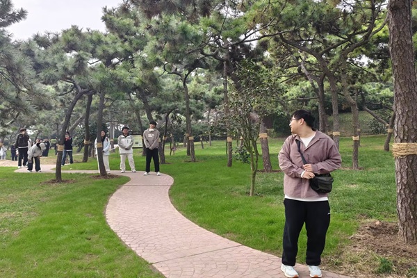 活动由“123木头人”项目拉开帷幕,吕关策担任裁判背对人群,随着“123,木头人”的指令落下,正在奔跑、摆姿势的同学瞬间定格——有的保持着起跳的弧度,有的做出搞怪表情,甚至有同学以“金鸡独立”的姿势僵在原地,滑稽又生动的画面引得现场笑声不断。几轮游戏下来,原本略显拘谨的同学逐渐放开,不少人主动设计趣味定格动作,让这场“静止竞赛”变成了班级创意秀。随后开展的“三个字”游戏将氛围推向高潮,同学们在公园步道间追逐躲闪,被追者喊出“乒乓球”“羽毛球”等运动相关词语的瞬间,便能短暂“安全定格”,既考验反应力,也呼应了健身节主题。游戏结束后,全班同学沿公园礁石栈道开展健步走,大家三五成群交流近期的学习生活,从课程难点聊到课余兴趣,轻松的氛围让班级成员间的联结更加紧密。