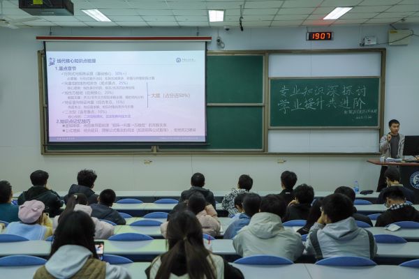活动伊始,主持人谢佶杉宣布分享会正式开始。分享人李正昊阐明线代“体量小、概念抽象、实为工具” 的核心特质,分享了利用现有资源、串联知识架构的学习方法;分享人陈一安强调高数对绩点、保研的重要性,从日常目标制定、利用AI 辅助学习、考前真题训练、心态调整等方面给出切实建议;分享人贺晨围绕工图,提出“备好工具、勤练读图绘图、总结知识点、刷真题” 的实践要点;分享人李鹏举分析大物“整体分散,层层递进” 的特点,分享了思维导图整合知识、基础题与难题结合训练等核心经验。