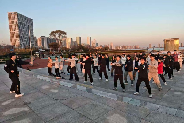 活动伊始,STAR跆拳道协会成员在南堂114教室为大家带来跆拳道知识科普,从起源发展到核心精神,逐步建立起在场同学对跆拳道的系统认知。随后,全体成员前往唐岛湾公园开展户外小游戏,员工们在轻松的互动中打破隔阂、拉近距离,深刻体会到团队协作的重要价值。游戏结束后,跆拳道示范团的成员现场展示并教授了标准的出拳、踢腿动作,从站姿调整到发力技巧,成员们耐心纠正每一个细节,让员工在一招一式中感受跆拳道的力量与专注。活动最后,示范团的成员为员工们带来了跆拳道的示范展演,转体踢腿利落干脆,出拳格挡刚劲有力,现场掌声经久不息。